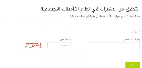 التحقق من الاشتراك في التأمينات الاجتماعية برقم الهوية والسجل المدني كلمة دوت أورج
